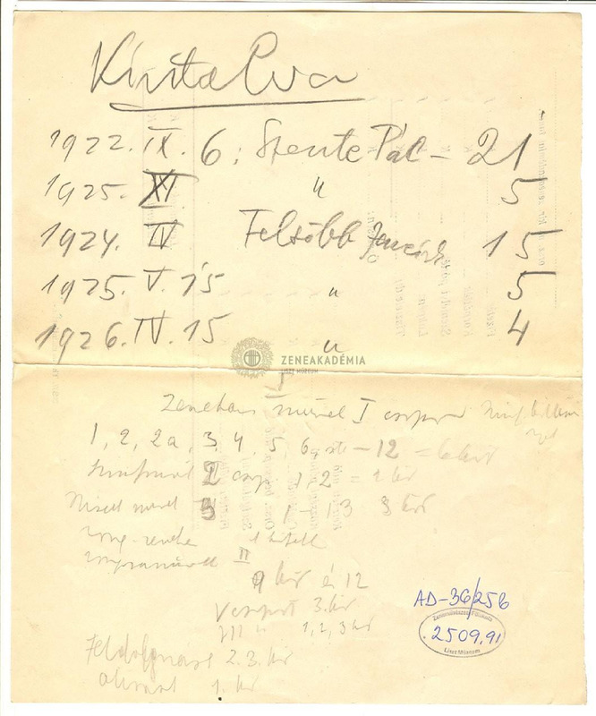 - Note of the library of the Academy of Music on the allotted volumes of the Liszt complete edition with date and the name of the new owners.