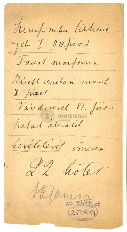 - Imre Stefániai acknowledges the receipt of further 22 volumes of the Liszt complete edition, without date.