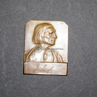 Single-sided plaquette. Half-length portrait of Liszt in right profile wearing cassock. At the bottom in a raised field the facsimile of his signature: “F. Liszt”
