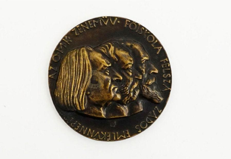 Double-sided-medal. On the obverse: Liszt, Erkel and Michalovits in right profile slightly overlapping each other. Signed at the bottom, in the middle. Circular inscription: “AZ O M K ZENEMŰV FŐISKOLA FÉLSZÁZADOS EMLÉKÜNNEPÉRE”.[For the 50th anniversary of the Royal Hungarian Academy of Music]. On the reverse: the standing figure of Orpheus with a lute surrounded by animals: lion, panther, bear, wolf. At the bottom the signature: “BECK Ö: FÜLÖP”. On top: “1875-1925”