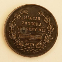 Double-sided medal. On the obverse, in a wreath of leaves: „MAGYAR / ZONGORA / VERSENY DÍJ” [Prize of the Hungarian piano competition]. Date engraved later: “JULIUS 10. 81.” On the reverse: a lyre with a star. Circular inscription: “SIPOSS ANTAL MAGÁNZENEAKADÉMIÁJA BUDAPESTEN” [Private Music Academy of Antal Siposs in Budapest]