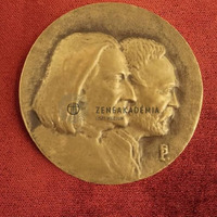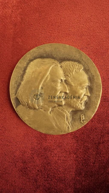 Double-sided medal. On the obverse: the joint half-length portrait of Liszt and Erkel, both of them in right profile. Signed on the right. On the reverse: an inscription in 8 lines, the names with bigger letters: „1975. ÉVBEN / A MAGYAR / ZENEMŰVÉSZETI / FŐISKOLA SZÁZADIK / ESZTENDŐJÉT / ÜNNEPLI / ALAPÍTÓJA: LISZT / ELSŐ IGAZGATÓJA: ERKEL” [In 1975 the Hungarian Academy of Music celebrates the centenary of its existence. Founder: Liszt, first director: Erkel.] Rim: smooth.