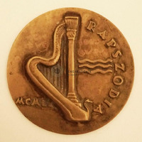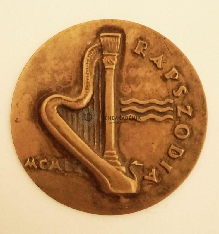 - Single-sided medal with a harp in the middle. Nex to it, to the right in the middle, 3 parallel lines. Beside the harp: “MCMLI”. Inscription on the right: “RAPSZÓDIA”. Rim: smooth.