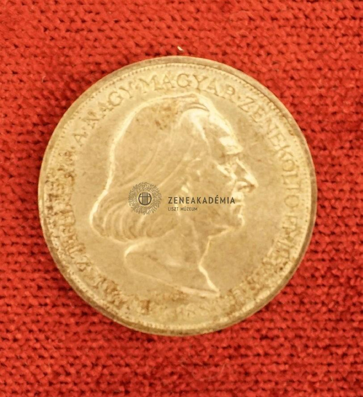 Double-sided coin with Liszt’s portrait. Circular inscription: “LISZT FERENC A NAGY MAGYAR ZENEKÖLTŐ EMLÉKÉRE 1811-1886” [In memory of the great Hungarian composer 1811-1886]. Signed. Side 2: Coat-of-arms with crown. Circular inscription: “A MAGYAR KIRÁLYSÁG 2 PENGŐ” [The Kingdom of Hungary 2 pengő]. Year on both sides of the coat-of-arms: "19....36”