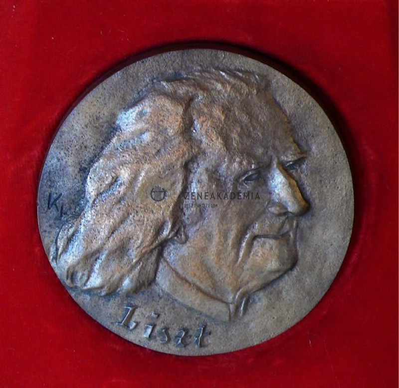 - Round medal showing the portrait of the old Liszt from the right. His head bent a little upwards, he looks friendly. Inscription under the picture: “LISZT”.