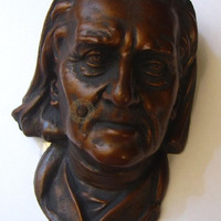 Portrait of the aging Liszt facing front. Ceramic painted bronze. Inscribed at the bottom in the right-hand corner: “F. LISZT”. The back of the statue is even so itcan be hanged on the wall. It contains the inscription: “MADE IN AUSTRIA 1928”