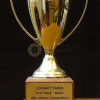 - On the base the inscription on a gilded plate reads: “LENNART RABES First Place – Music ABI Literary Competition”