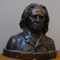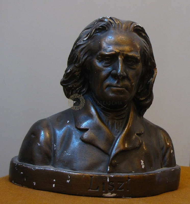 - The old Liszt. Turning his head slightly to the right, he looks downwards. Inscribed at the bottom in the middle: “LISZT”. It is painted, patined.