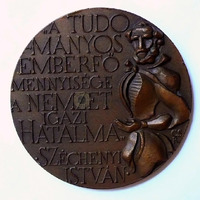 Double-sided medal. Inscription on the obverse: “A tudományos emberfő mennyisége a nemzet igazi hatalma. Széchényi István” [The real strength of a nation lies in the multitude of the learned people. István Széchényi]. At the text on the right: the portrait of Széchényi. On the reverse: the facade of the Hungarian Academy of Sciences. Inscribed all round: “Magyar Tudományos Akadémia 1825-1975”