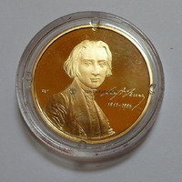 On the obverse: in the upper part “Magyar Köztársaság”, in the lower part between two dots: “50000 Forint” can be seen. In the middle field, on top, the picture of an open piano lid, on the left side the place of production: “Bp”. On the right the date is given: “2011”. Under the lid of the piano the music of a part of the Rákóczi-March can be seen inscribed underneath: “Rákóczy Marsch”. On the reverse: in the middle field the portrait of the young Liszt can be seen. On the right Liszt’s signature and the dates: “1811-1886”, on the left side of the portrait the signature of the designer Tamás Soltra E. The rim is smooth. Weight: 6.982 gr. Type: proof.