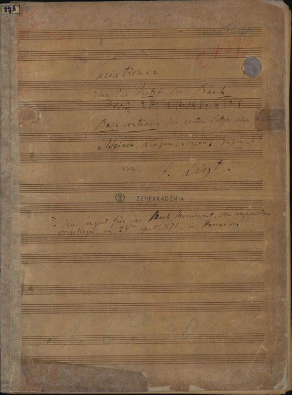 Complete manuscript with the sizing signs of the typographer. On the title page a dedication to Anton Rubinstein and a reference to the performance by Liszt in Hannover at 28.04.1875, at a concert organized to the benefit of a Bach monument.
