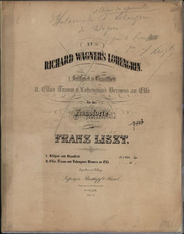 "Aus Richard Wagners Lohengrin.1 Festspiel und Brautlied." Liszt made numerous insertions and corrections in the 1854 copy issued by Breitkopf & Härtel. He changed the title to: "Interm?de et Choeur des epousailles de Lohengrin de Wagner."