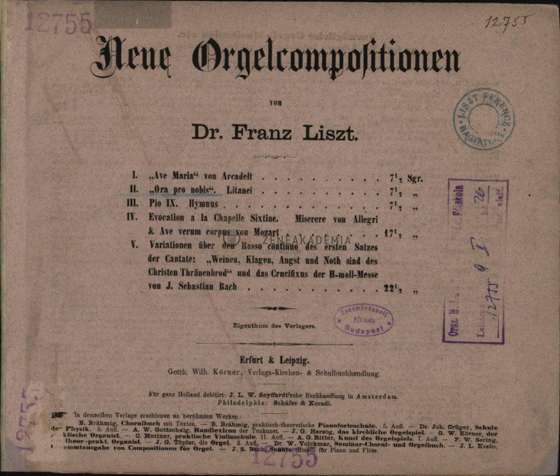 Printed copy of the litany for organ/harmonium, (Körner, Erfurt), with several annotations (dynamic signes, alterations, etc.) from Liszts hand and probably in A. W. Gottschalgs hand.