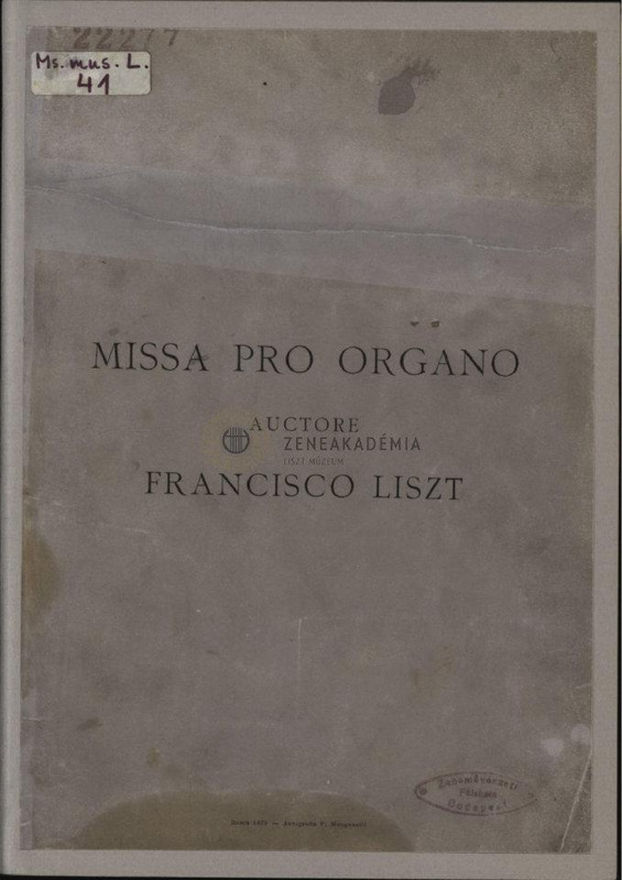 Printed autography edition of the organ mass, Manganelli, Rome, 1879. On the title-pages Liszts autograph dedication to Henrik Gobbi.