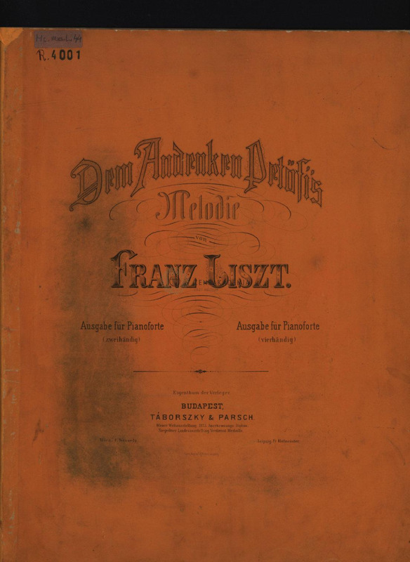Printed copy of the composition,(Táborszky & Parsch, Budapest, 1877). On the title-page Liszts autograph dedication:"Herrn Ladislaus Neugebauer, dankend ergebenst F. Liszt. Dezember 77 - Budapest."