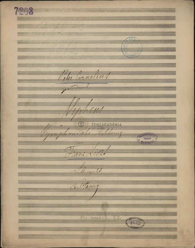 Transcription of Liszts symphonic poem Orpheus for piano by Carl Tausig. Original manuscript.