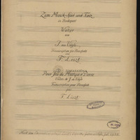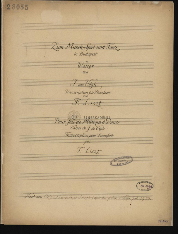 Zum Musik-Spiel und Tanz / in Budapest / Walzer / von / J. von Végh / Transcription für Pianoforte / von / F. Liszt Nach dem Originalmanuskript Liszts kopiert v. Julius v. Végh, Juli 1933.