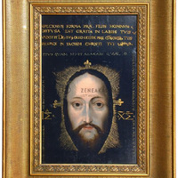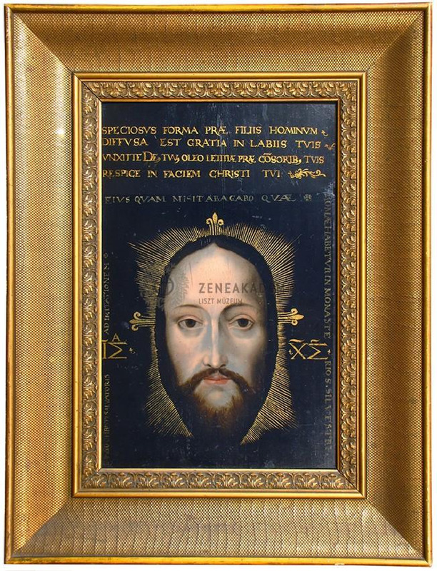 Copy of a painting preserved at the Saint Silvester monastery in Rome. The painting represent the face of Jesus Christ. According to the tradition, Jesus sent his image to the ill king Abagarus of Edessa. In gilt frame.