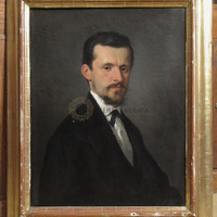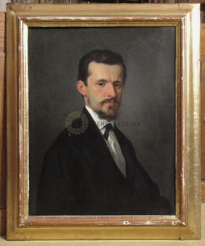 The 44-year-old Táborszky wears dark tie and jacket. The background is homogenously dark. In the lower right corener, signature: "Szemlér M. 1875".