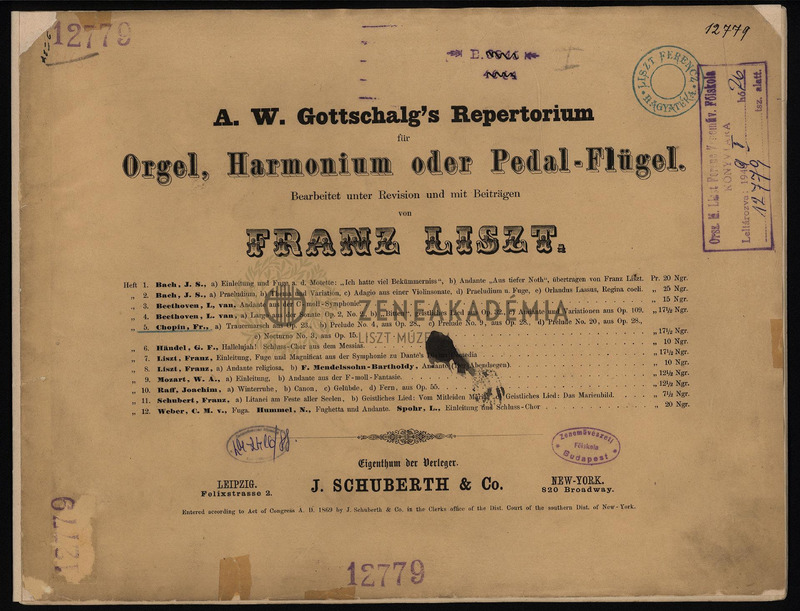 Gottschalgs Repertorium für Orgel, Harmonium oder Pedal-Flügel. Bearbeitet unter Revision und mit Beitragen. (I. Serie,) Heft 5. Chopin, Fr(yderyk): a/ Trauermarsch aus Op. 23, b/ Prelude No. , aus Op. 28, c/ Prelude No. 9, aus Op. 28, d/ Prelude No. 20, aus Op. 28, e/ Nocturno No. 3, aus Op. 15.