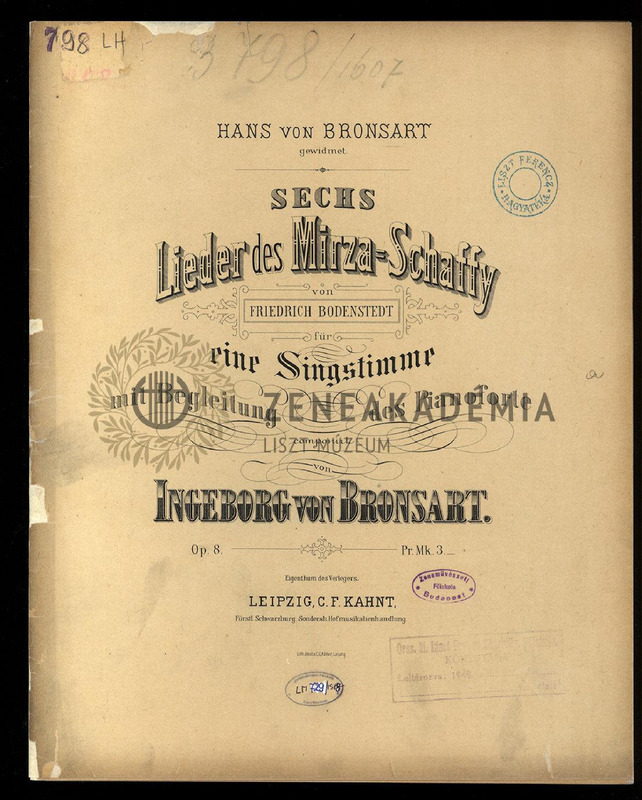 Sechs Lieder des Mirza-Schaffy von Friedrich Bodenstedt für eine Singstimme mit Begleitung des Pianoforte. Op. 8.