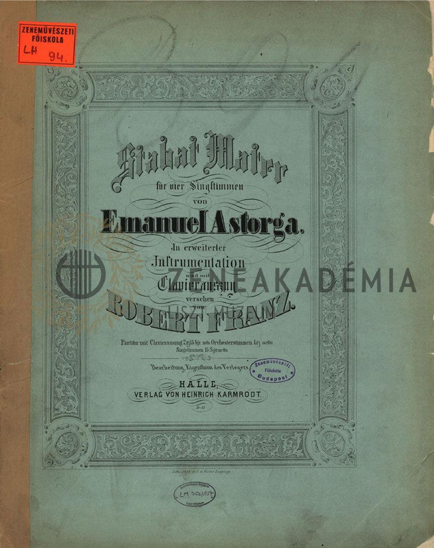 - Stabat mater für vier Singstimmen. Partitur mit Clavierauszug.