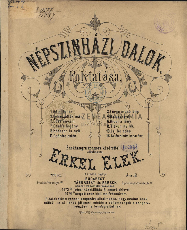 Népszinházi dalok. Folytatása. Énekhangra zongora kisérettel [Songs for the Folk Theatre. Continuation. For voice with piano accompaniment].