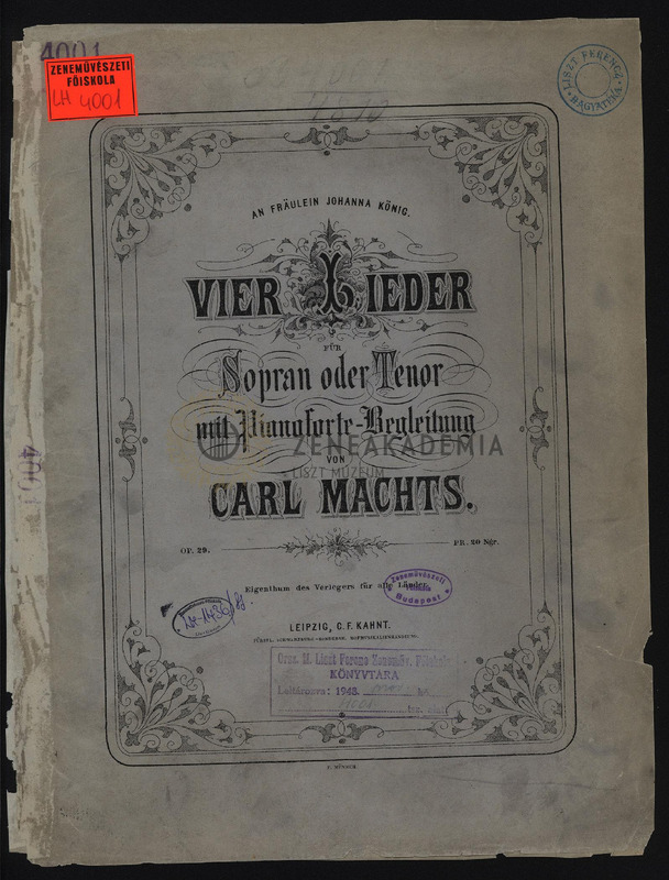 Vier Lieder für Sopran oder Tenor mit Pianoforte-Begleitung, Op. 29.