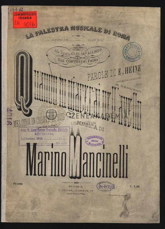"Quando tu giacerai nellavello". Melodia in chiave di sol (per Sop. o Ten) [e pianoforte].