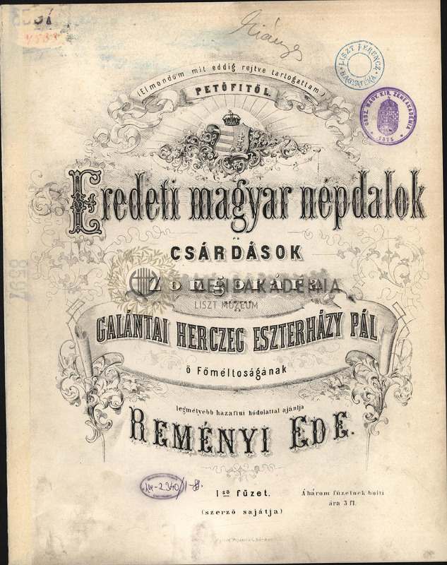 Eredeti magyar népdalok és csárdások [Original Hungarian folk-songs and csardases]. Vols I-III.