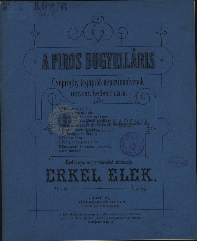 A piros bugyelláris. Csepreghy Ferencz legujabb eredeti népszínművének összes kedvelt dalai [The red purse. All favourite songs from the most recent folk play by Ferencz Csepreghy].