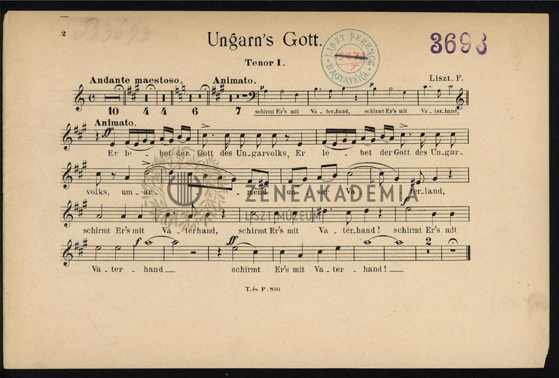 Ungarns Gott für Baryton-Stimme und Chor (ad libitum) mit Clavier-Begleitung, [R. 635, S. 339.] Partitur und Stimmen.