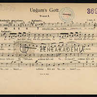 The title-page, the Baritone solo and the choral parts are in German. The cover is Hungarian. The score has Hungarian and German texts. 2 copies, in covers with different colours.
