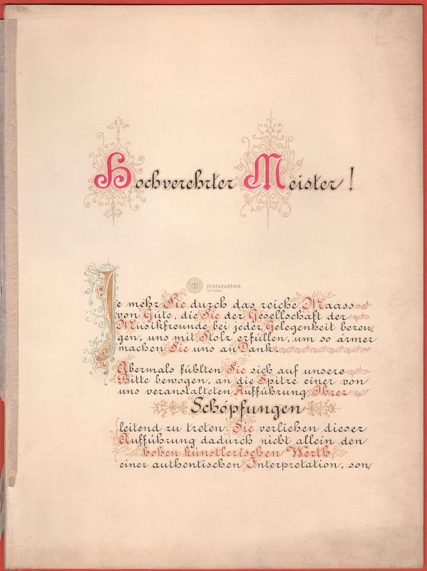 Letter of thanks of the Gesellschaft der Musikfreunde (Vienna) for Liszts concert on 23 March 1880 in which he conducted his Mass for male choir, the symphonic poem Die Ideale and the cantata The Bells of Strassbourg Cathedral.