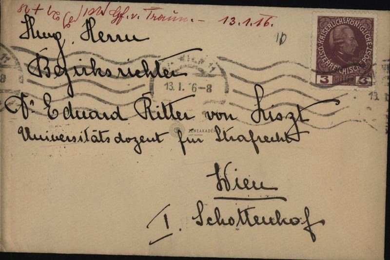 Rudolf Traun (Österreichische Gesellschaft vom Roten Kreuze)’s card to Eduard von Liszt, Jr.