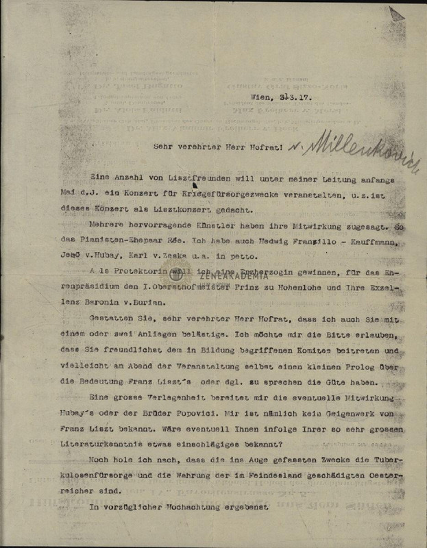 Eduard von Liszt, Jr.’s letter to Max von Millenkovich