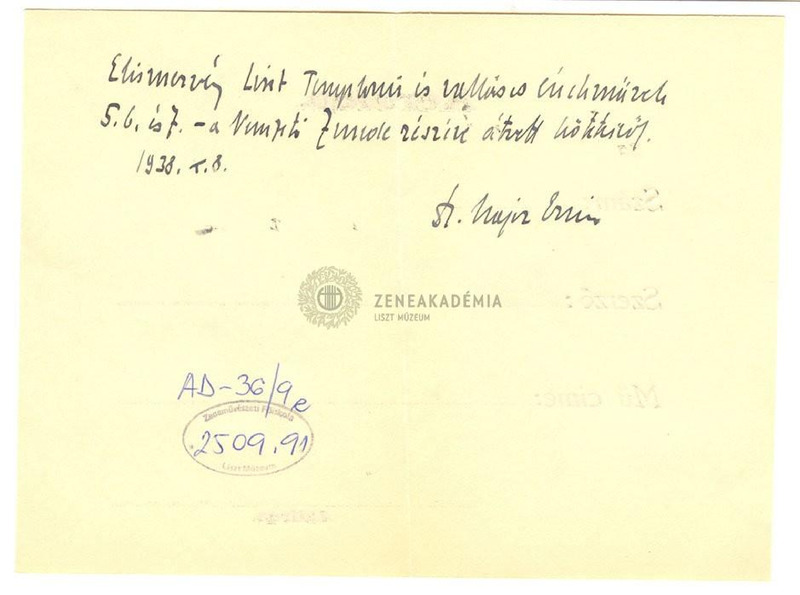 - Erzsi Major s acknowledgement of receipt of volumes 5, 6 and 7 of "Sacred Choral Music" of the Liszt complete edition for the National Conservatory.