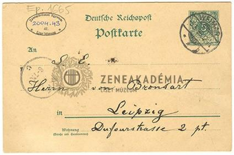 - Eduard Lassen’s postcard to Hans von Bronsart