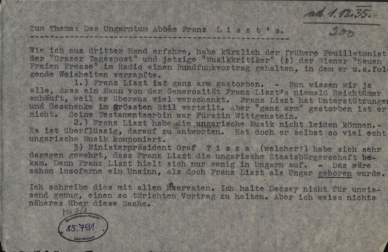 Comments of Eduard Liszt about a radiolecture of an unknown austrian music critic.