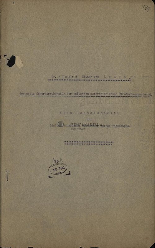 German translations of French letters about Eduard Ritter von Liszt, by an unkonwn author.