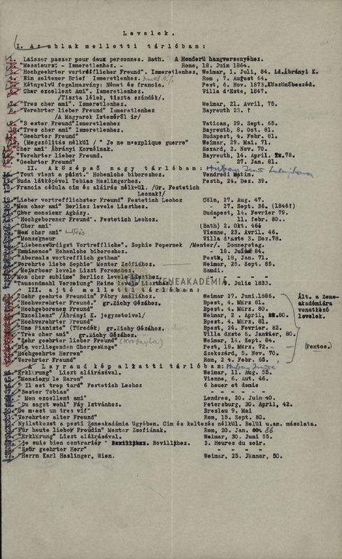 - Liszt-exhibition. Typed list, compilation of Isoz Kálmán.