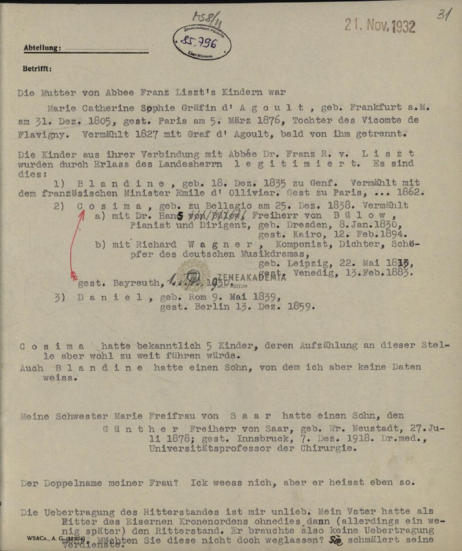 - Recording about Liszts family and relatives relationships.