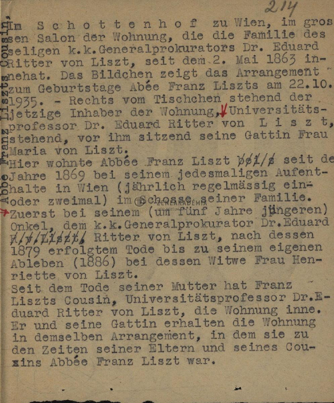 Three photocopied images from Eduard Ritter von Liszts book "Franz Liszt. Abstammung, Familie, Begebenheiten".