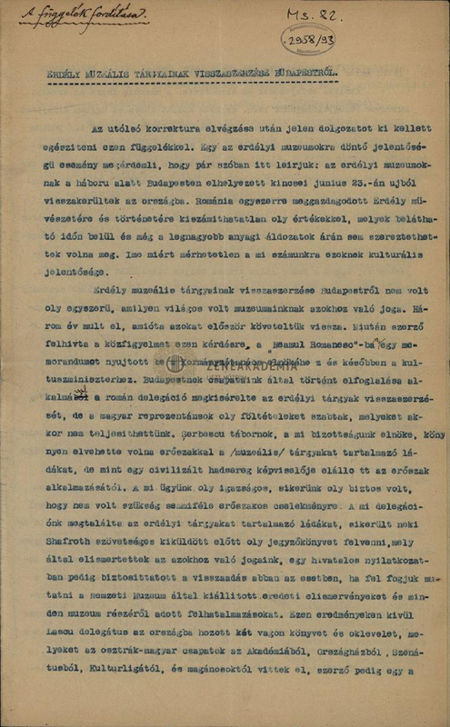 - Recovery of Transylvanian museum objects from Budapest