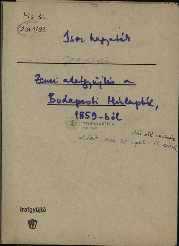 - Kálmán Isozs 26 notes: ink and pencil notes. Liszts name is on the 11th note.