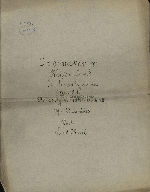 Organ book for the second edition of the 17th Cantion of János Kájoni, arranged by Ágoston Balas in 1719
