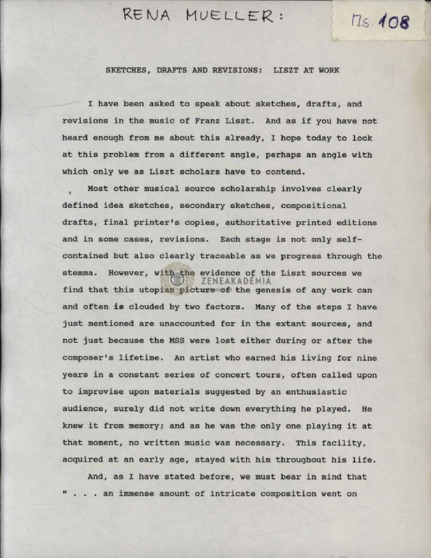 - Rena Mueller: "Sketches, drafts and revisions: Liszt at Work"