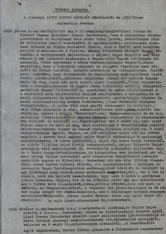 - Secretarys report on the operation of the Liszt Ferenc Society in Bratislava