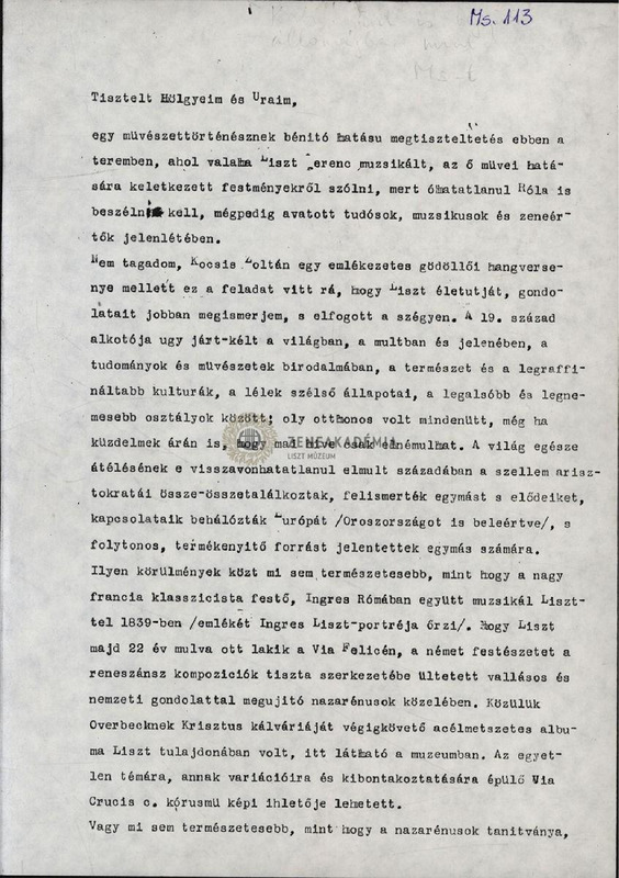 Katalin Keserűs opening speech at the exhibition "Hommage á Liszt"