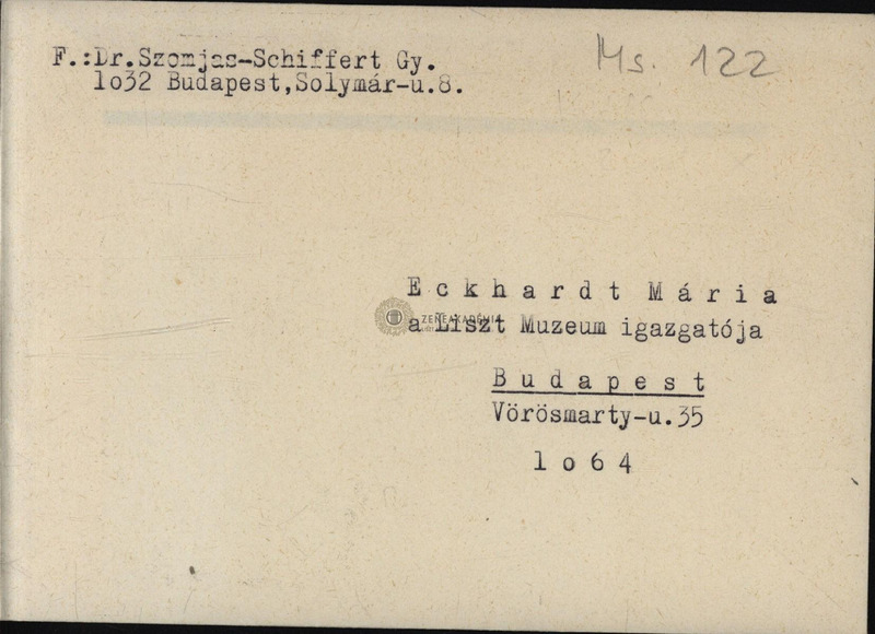Letter of thanks from György Szomjas-Schiffert to Mária Eckhardt.